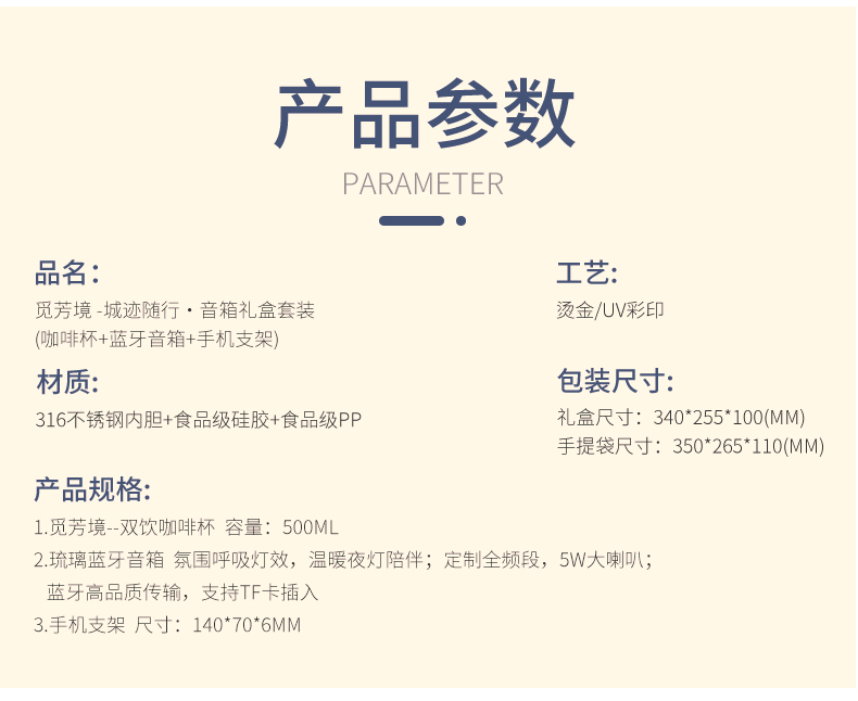 覓芳境-城跡隨行?音箱禮盒(咖啡杯+音箱+手機(jī)支架)