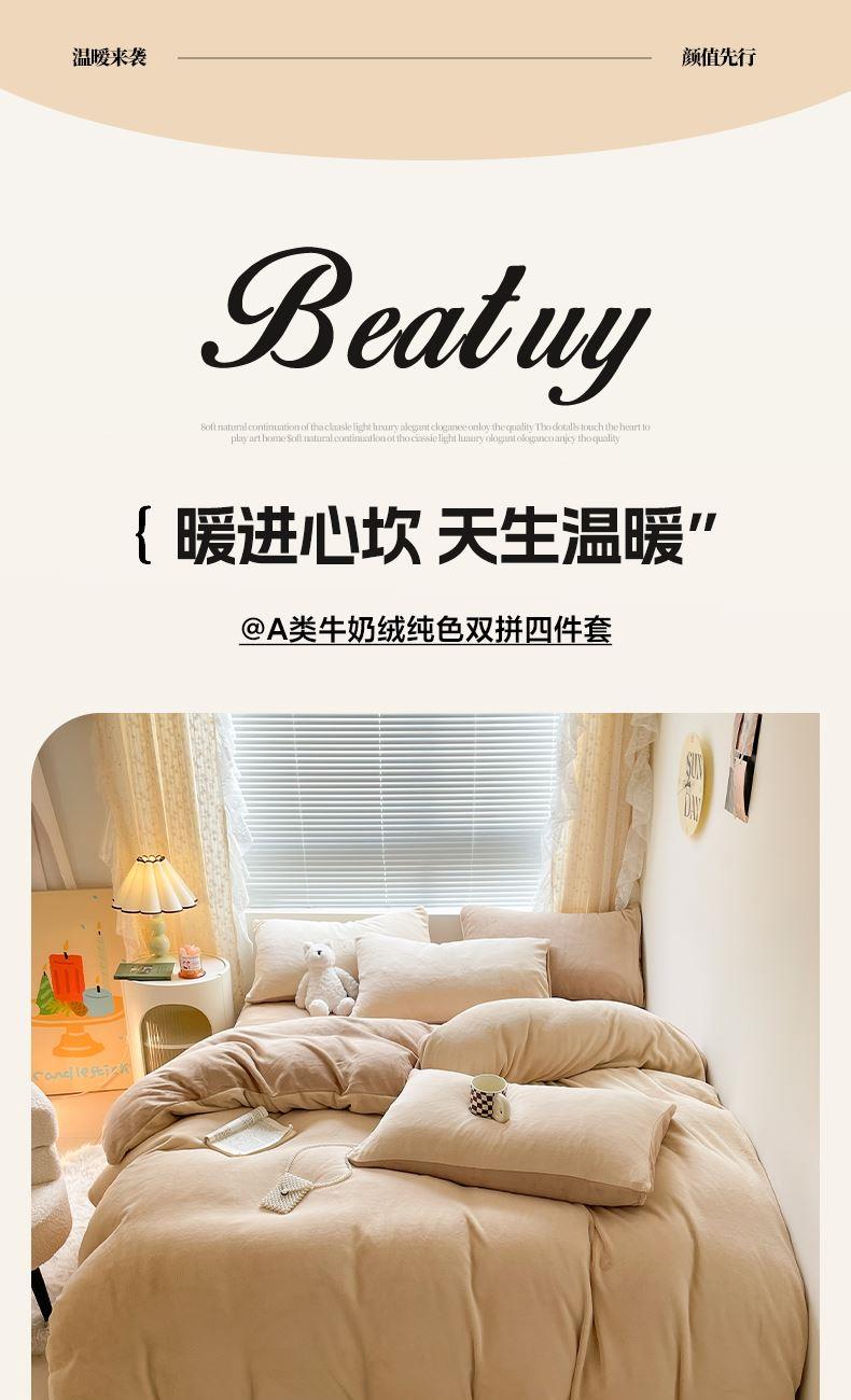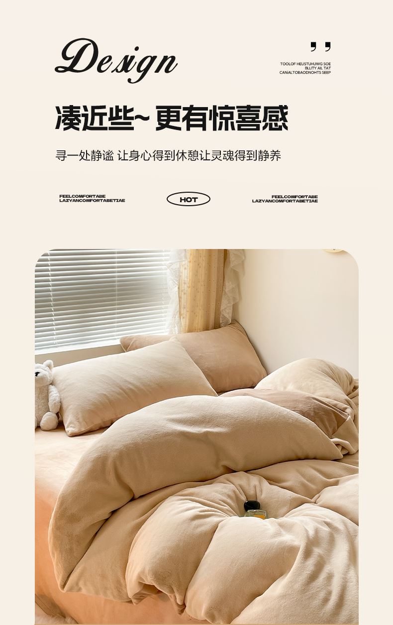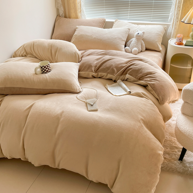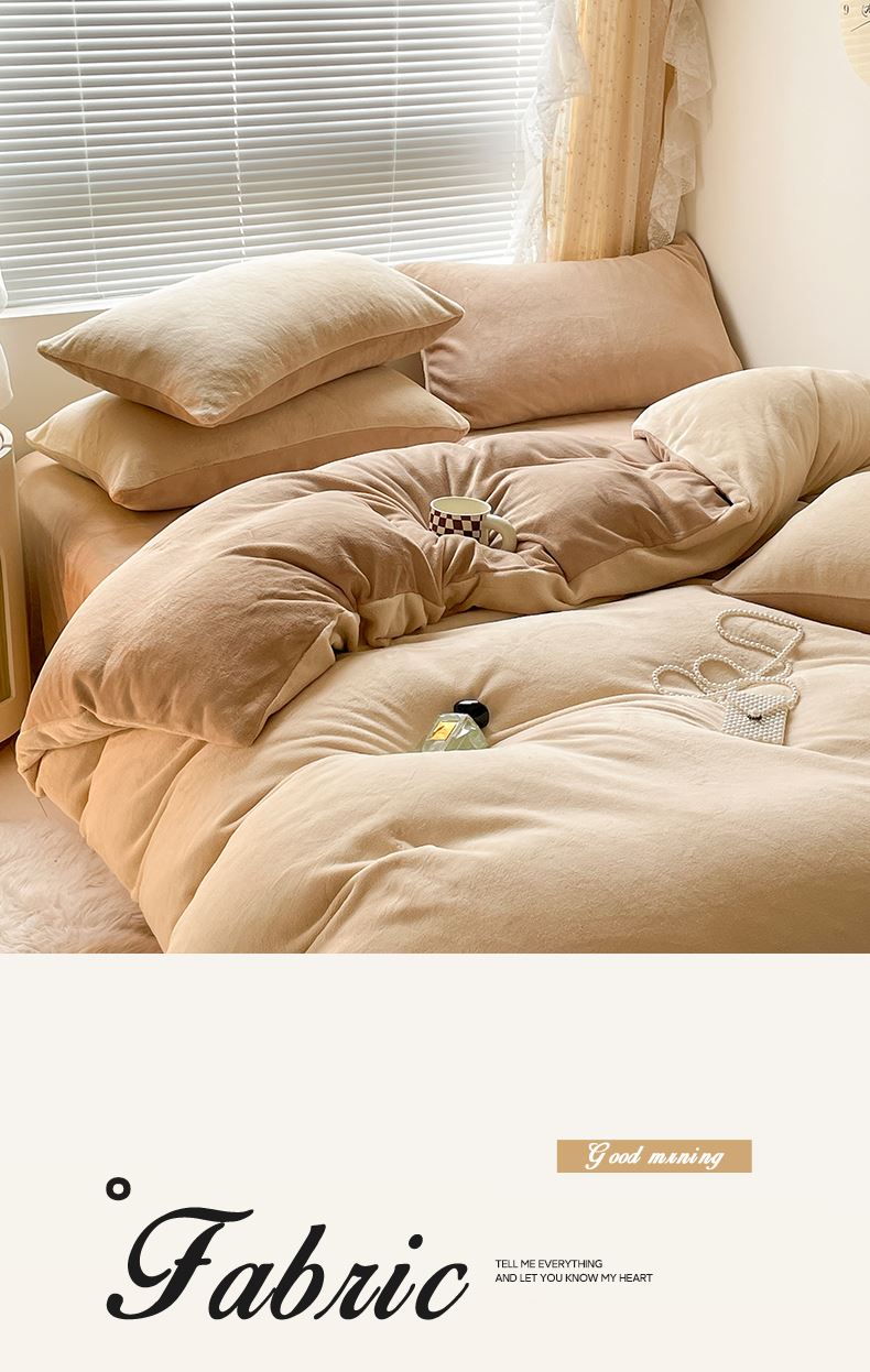 百麗安娜純色牛奶絨四件套-杏咖色 百麗安娜純色牛奶絨四件套-杏咖色