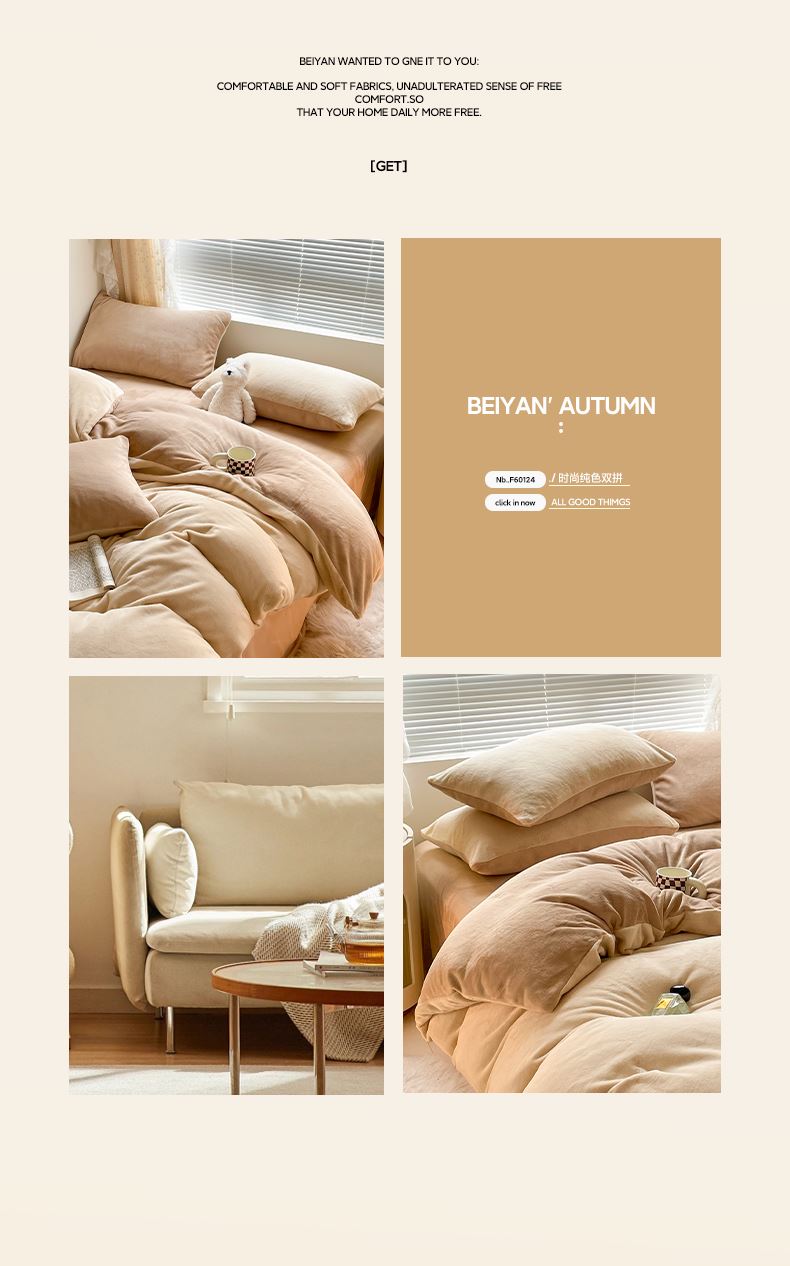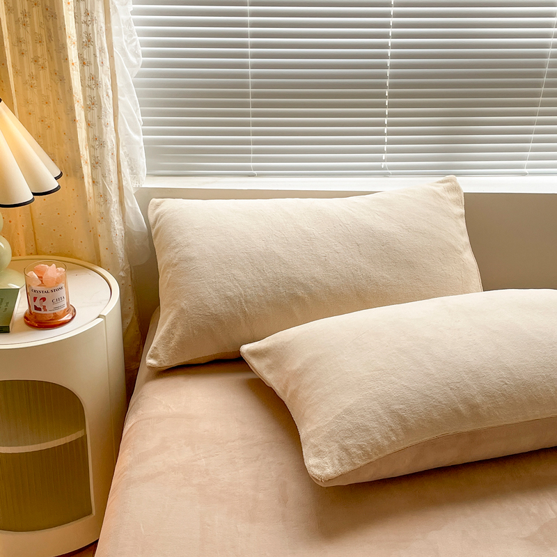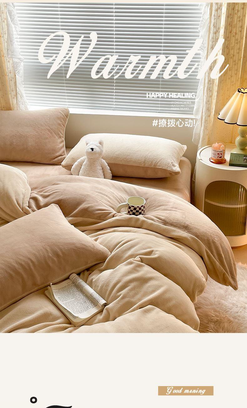百麗安娜純色牛奶絨四件套-杏咖色 百麗安娜純色牛奶絨四件套-杏咖色
